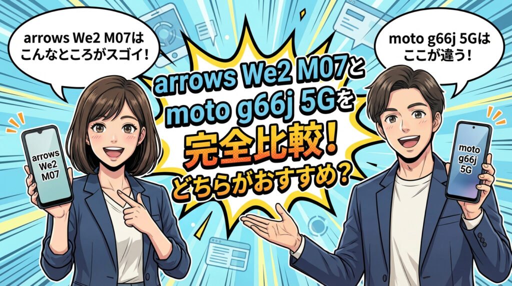 スマートフォンを選ぶとき、性能・価格・使いやすさのバランスはとくに重要です。 arrows We2 M07と moto g66j 5Gはどちらものりかえ価格が 1万円以下で購入できるコスパ抜群のモデルです。 片方はサステナブルな充電技術や軽量ボディが魅力、もう片方は大... -